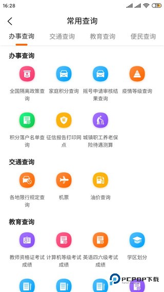 3、点击常用查询,可以查看全国隔离政策,积分入户,摇号查询
