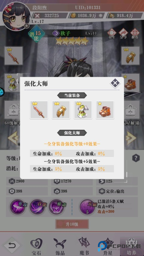 4、别忘了强化装备哦,全身上下一起强化会触发额外强化效果战力加倍。