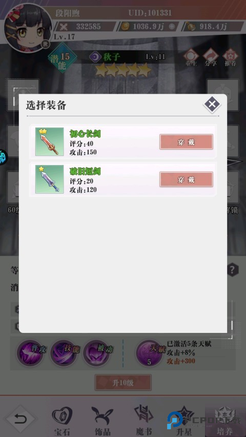 4、别忘了给角色穿装备强化战力,推关卡效率飙升