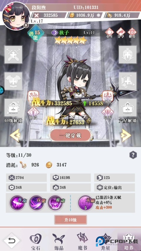 1、进入英雄培养界面直接升级等级,战力轻松提升。