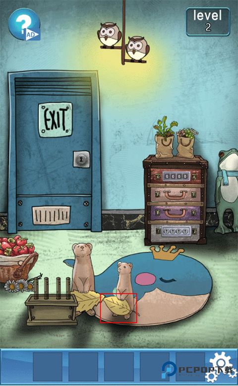 2、拿走长颈鹿头上的眼镜。使用钥匙将柜子的门打开,取走里面的纸条。