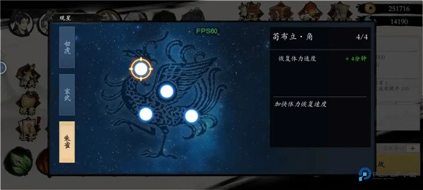 2、再去点观星!观星在界面右上角,观星没点满前可以重置!喜欢刷图的把朱雀系体力恢复加速点出来!然后旁边的挂机时长后面再点!