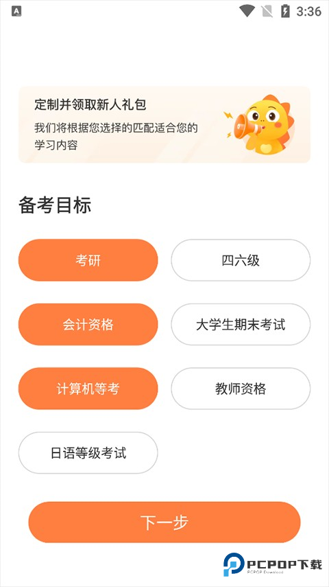 1、完成备考目标系统会根据您选择的匹配适合您的学习内容