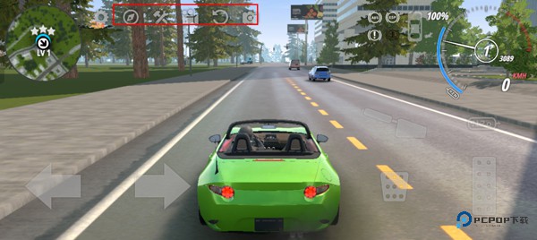 1、进入游戏之后,左下角两个按钮可以用来控制车辆的左右方向;