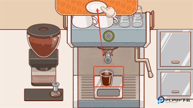 10、制作完咖啡后点击咖啡向上移动进行装盘;