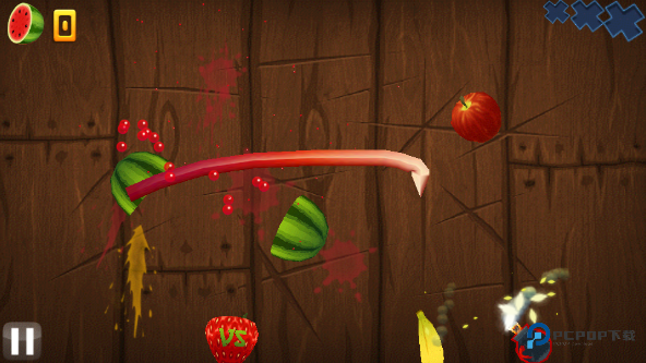 2、只需将手指扫过屏幕,就能像忍者战士般痛快地切开溅出美味果汁的水果