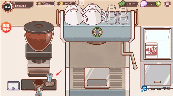 2、进入场景将中间的设备移到下图中的位置获取咖啡粉
