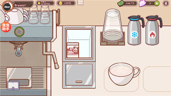 7、沉浸体验:游戏背景设定在充满魅力的小镇,玩家可以在轻松的BGM和ASMR音效中享受制作咖啡的过程,获得沉浸式的咖啡体验。
