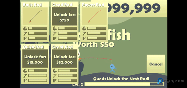 2、完成任务获得经验和钱,解锁更好的钓竿钓到更多珍贵的鱼;