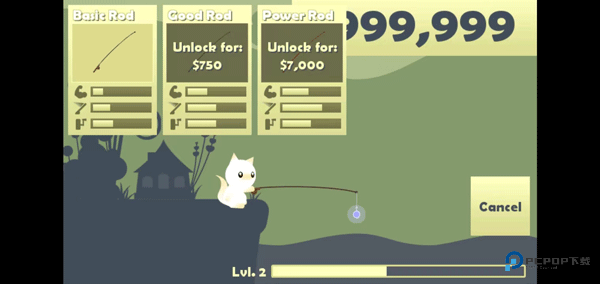 小猫钓鱼正版,这是一款操控猫咪在河边上钓鱼的休闲游戏。操作比较简单易上手,通过滑动屏幕甩竿,钓到的鱼可以用于升级渔具、购买优质鱼饵或解锁新的船只。
