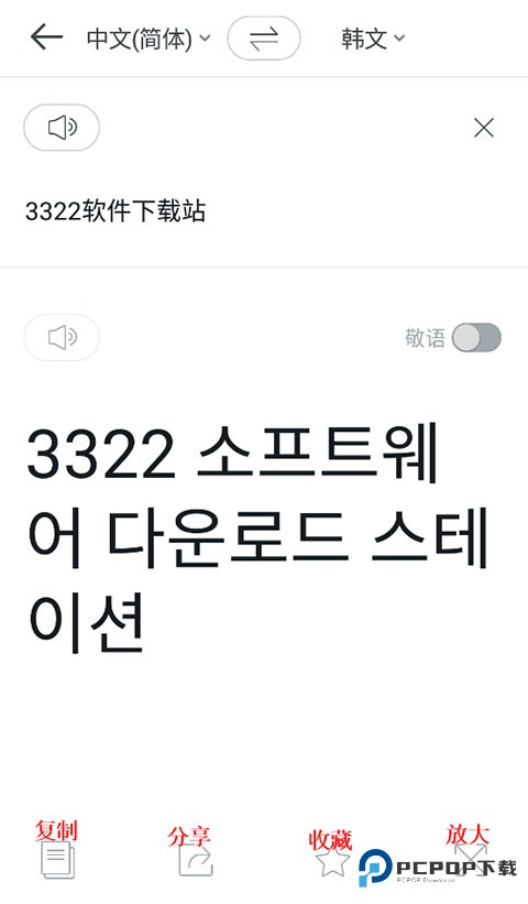 3、然后编辑你想翻译的中文,下方就会出现对应的韩文,还支持语音哦!