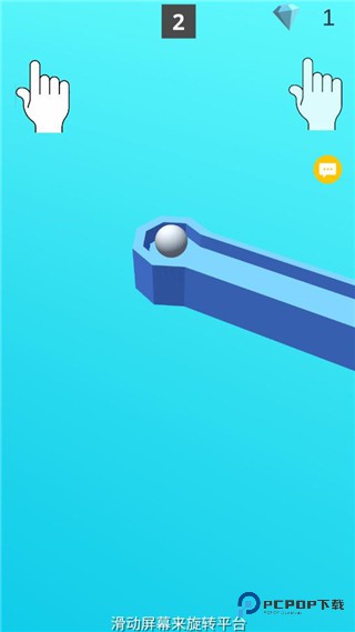 3、滑动屏幕来旋转平台使其下落滚动,让小球下落到制定地方即算通关关卡