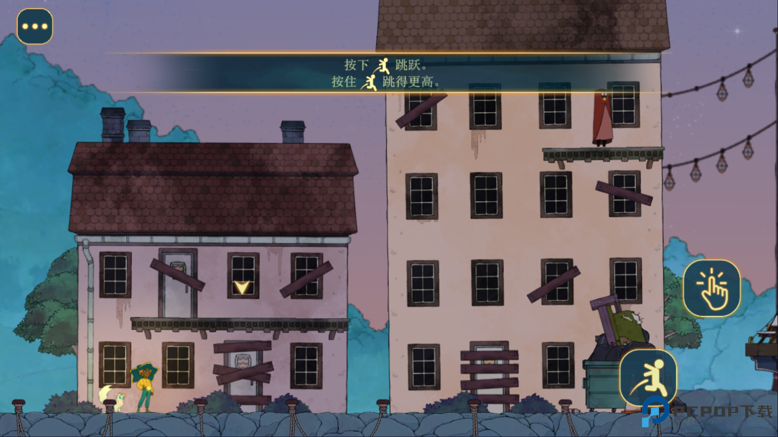 2、按下【跳跃】图标跳一下,按住【跳跃】图标跳的更高