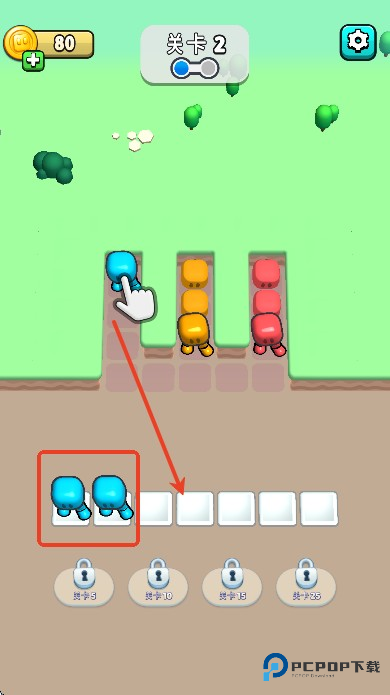 2、玩家需要将上方的方块小人拖到下方方框中