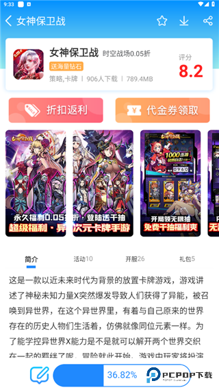 2、进入游戏页查看介绍、开服信息、礼包内容。