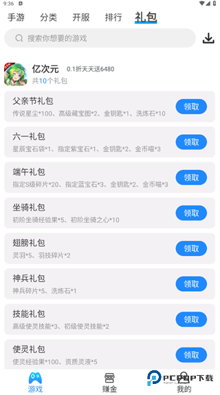 5、点击进入礼包版块,可查看或搜索海量手游礼包。