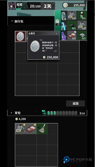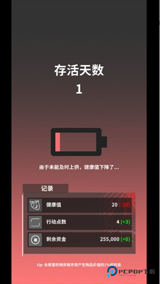 5、每次冒险结束,不管是成功还是... 呃... 暂时倒下,系统都会清楚告诉你这次坚持了多少天,这就是你当下的生存记录了。