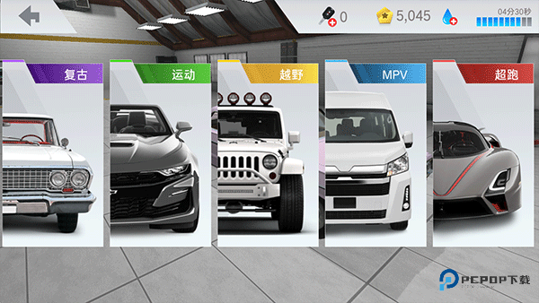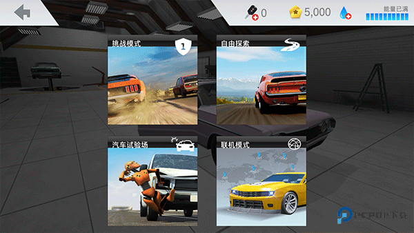 2、四类模式:挑战模式、自由探索、汽车试验场、联机模式。