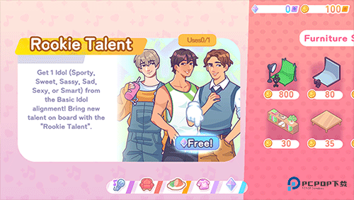 2、这时候需要招募练习生!直接戳左下角的 "shop" 按钮,你会看到星探商店页面。