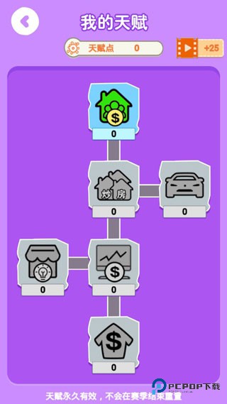天赋点可以增加对于某个领域的加成,例如炒房、商业、利息等等。
