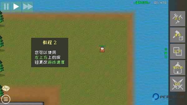 2、点击左上角的按钮用来更改游戏的速度,让人物可以更快速地完成相应的目标。