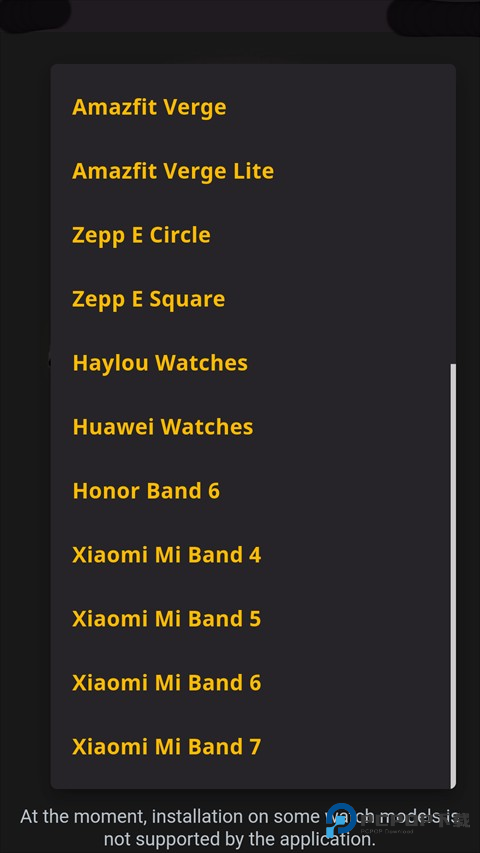 1、首先需要在本站下载安装AmazFaces,进入该软件后首先需要选择你的设备,软件内提供了市场上大多数的手环,只需选择你的手环型号即可