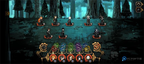 这里的共鸣不是仅限一个角色使用同属性卡片时能触发共鸣,而是相邻角色使用同属性卡片时,也可以触发共鸣,一般认为共鸣越多越好然后屏幕右上角有7种资源使用属性,技能后会增加资源,这些资源达到后可以触发左边的BUF。