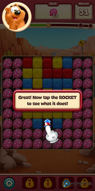 3、右上角显示的是剩余步数,步数左侧是关卡目标。