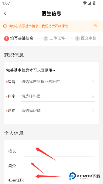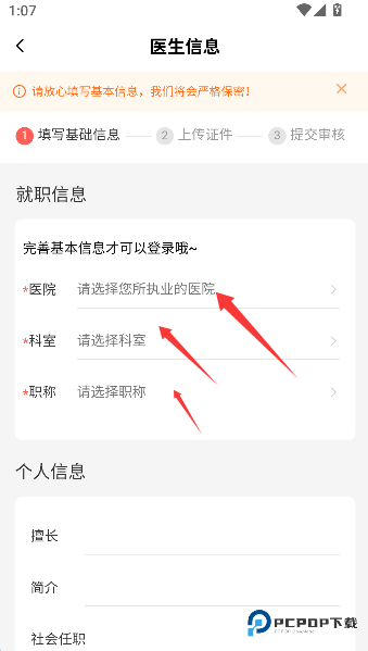1、在资料页郑重填写所在医院、科室和职称,这组信息如同您的职业身份证,为后续诊疗服务奠定专业基石。