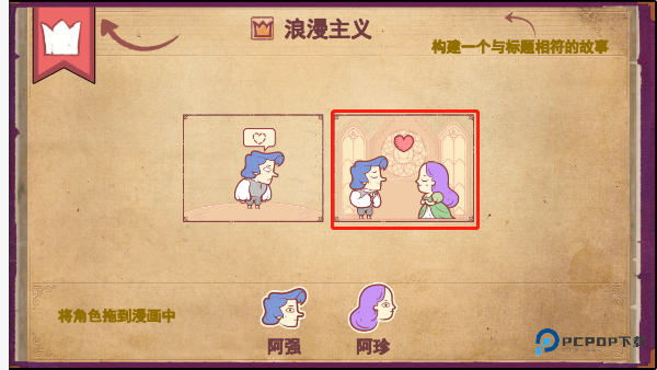 首先把阿强拖入到第一个框中,再把阿强和阿珍都拖入到第二个婚礼殿堂的框中,这样他们就作为对方的初恋相爱结婚了。
