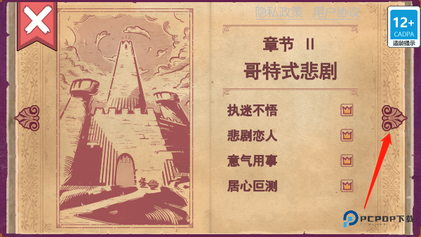 1、打开说书人游戏手机版,进入游戏第一章的故事是爱与失去,这里有初恋、心碎、治愈和戏剧的通关类型选择。