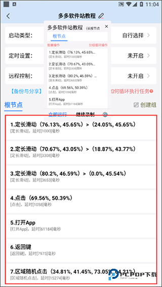4、全部录制完,回到 APP 里。就能详细查看刚刚录制的任务,里面包含每一步操作具体做了啥,操作之间的延时多久,都看得一清二楚。