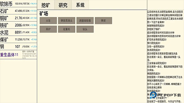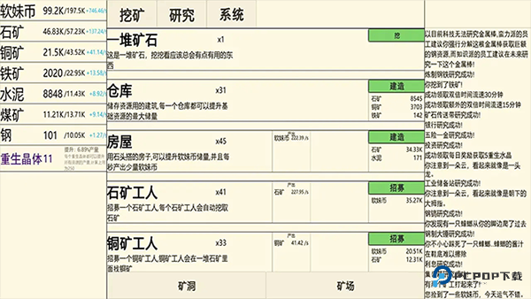 1、通过读取系统提示,你得做出选择:比如决定挖掘哪块区域、升级手中的工具、雇佣些帮手,或者研发新矿石加工方法。