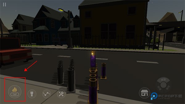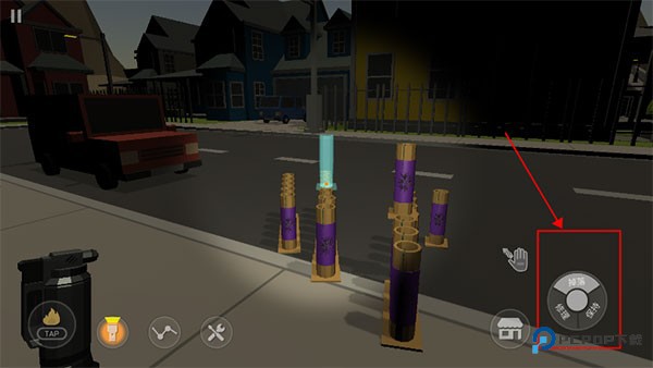 10、调整滑动屏幕对准你摆放好的烟花,点旁边的打火机按钮。点一次点燃烟花引线就足够了,其他烟花会自动跟着点燃引信。