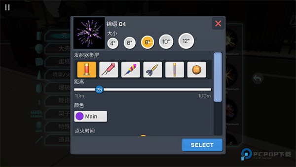8、选定一款烟花点击购买后,会弹窗让你设定具体参数:烟花大小、发射器类型、烟花飞多高、引线燃烧需要多久。确定就好。