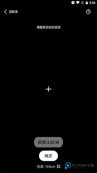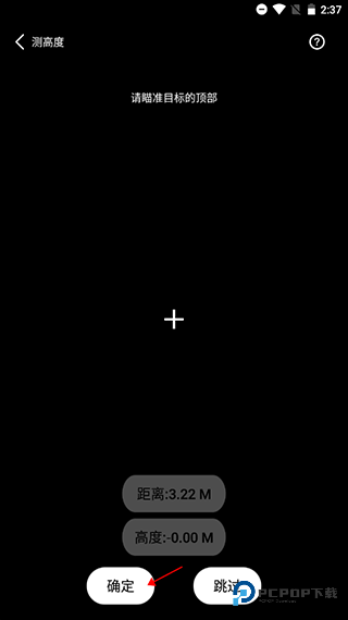 3、瞄准顶部点击出结果:垂直移动手机,准星圆心移至头顶或最高点,点击顶部按钮显示高度值。