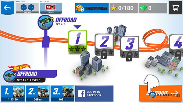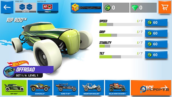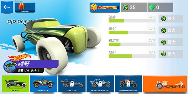 1、进入风火轮赛车游戏最新版,可以看到有三种模式可以选择,目前头两个还没解锁,因此先点击最后一个模式进行游玩。