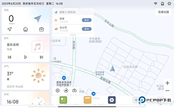 桌面支持将各种 APP 以及行车信息映射到首页,其中包括导航信息,音乐信息,FM 信息,车况信息,天气信息等,后期也会增加车友常用功能的支持。