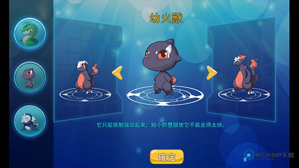 1、首先我们第一次进入游戏的时候,系统会赠送我们一只初始精灵,我们从三只里面挑选一只自己喜欢的点击确定即可。