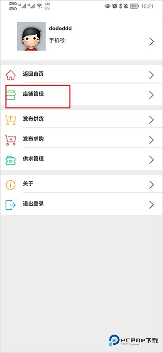 2、在个人中心界面点击店铺管理