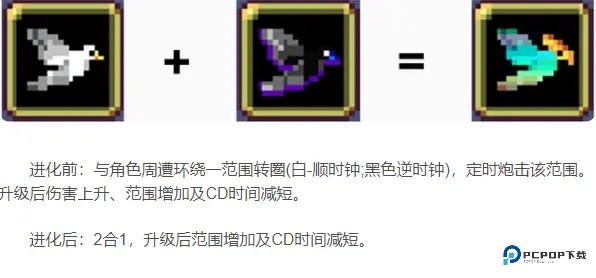 彩虹鸟需要黑鸟和白鸟都满级+开箱子 才能合成超武,黑鸟和白鸟合成彩虹鸟后只占一个武器格子(黑鸟白鸟都属于武器)