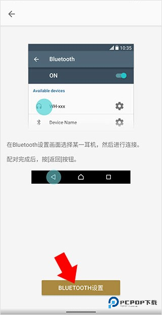 4、然后来到下方界面,按照提示打开蓝牙设置界面,并选择耳机进行连接,配对完成后点击返回即可。