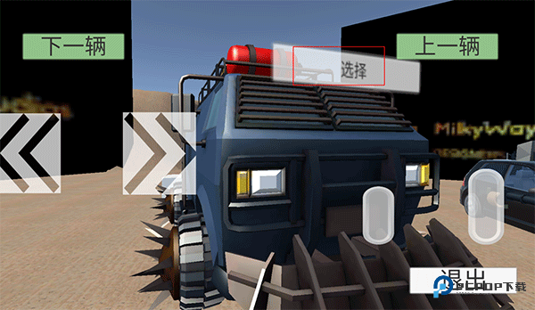1、通过点击下一辆切换车辆,选择好车辆点击“选择”即可开始游戏。
