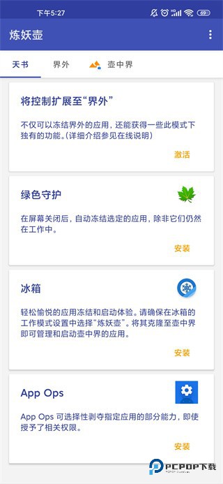7、还有一个方式是将“工作空间”中的部分应用冻结,这需要安装冰箱将其克隆到炼妖壶中,打开激活运行模式,直接冻结应用。