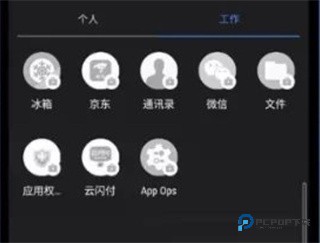 2、创建完毕后,可以在应用程序列表里看到顶部除了“个人”,还有一个“工作”应用列表,左右滑动即可在两个应用列表中切换,非常方便,工作空间的应用右下角都会有一个公文包的蓝色Logo。