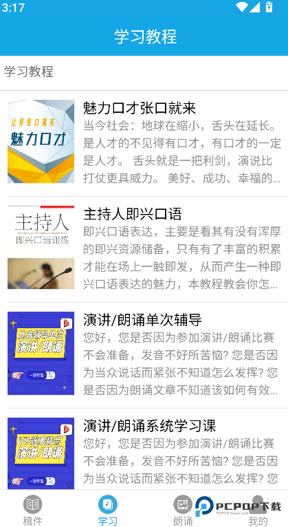 1、为有演讲朗诵等口才学习需求的使用者提供一个集中、便利的工具。