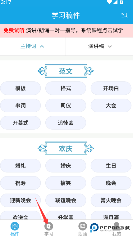 朗诵演讲口才安卓版是一个针对口语表达学习的移动平台。该平台汇集大量演讲与主持稿件,包含丰富的优秀范文资源。平台核心资源分为稿件库与课程两部分。稿件库内容覆盖多种场合需求,支持按具体主题进行筛选,便于快速定位所需文本。