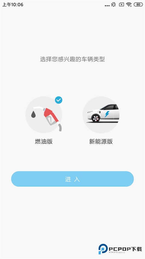 2、选择你感兴趣的车辆类型,这里有燃油版和新能源版两种,然后点击进入;