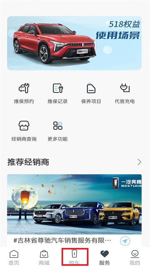 1、使用软件对其个人信息进行注册,并且填写购买时的手机号,可直接凭借平台上的数据,让用户绑定上对应的车辆;进入主页后正下方有个控车,点进去;