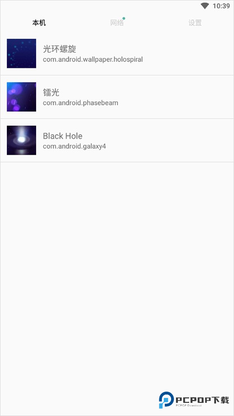 只显示应用程序名称和包名称。点击项目后,可以进入动态壁纸预览。如果应用程序有一个入口点,长按项目将启动动态壁纸程序。
